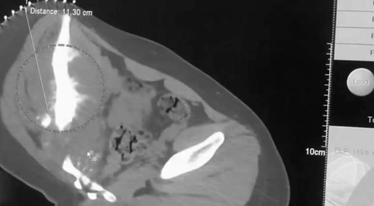 (Область некроза опухолевой ткани, на которую указывает кончик зонда)