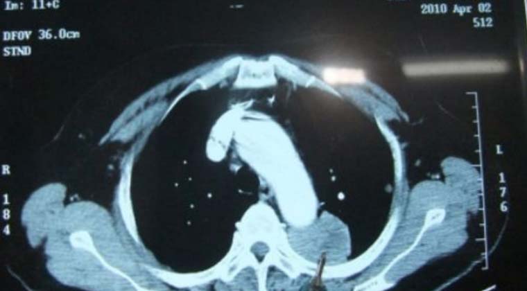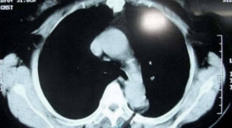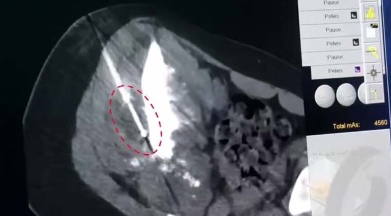 (Опухоль, на которую указывает кончик зонда)