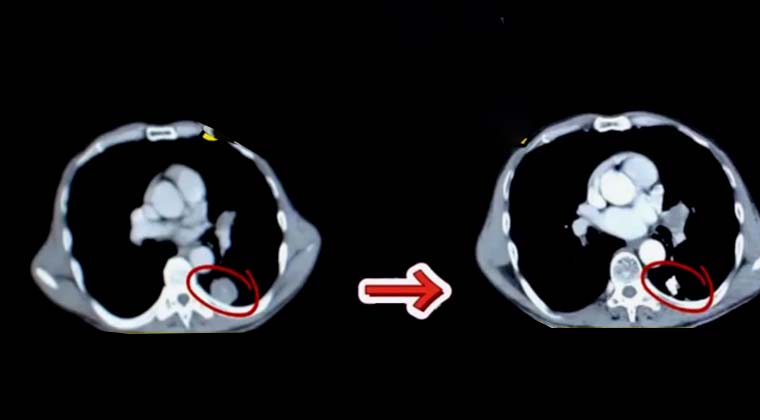 Пациент 75 лет с раком лёгкого, полное исчезновение опухоли через 50 дней после имплантации частиц I-12