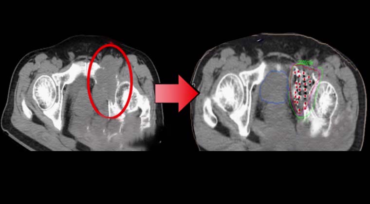 После оценки выполнена имплантация частиц I-125 под контролем визуализации.