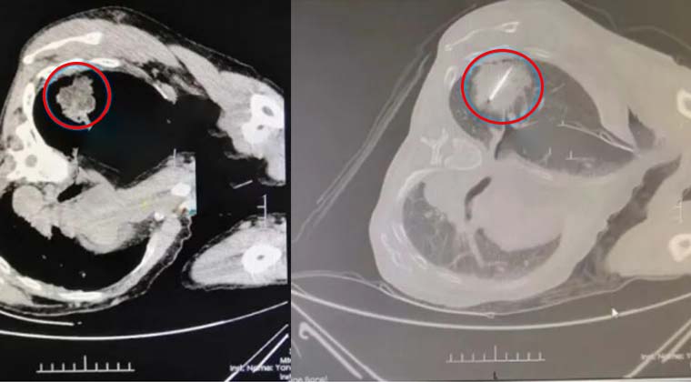 План лечения: Учитывая ограниченный кардиопульмональный резерв, пациент не подходил для хирургического удаления в грудной полости и имел ограниченную переносимость стандартной химиотерапии и других системных методов. Команда выбрала выполнение комбинированной абляции Kangbo с экстремальными температурами для снижения опухолевой нагрузки и улучшения условий для последующего комплексного лечения.
