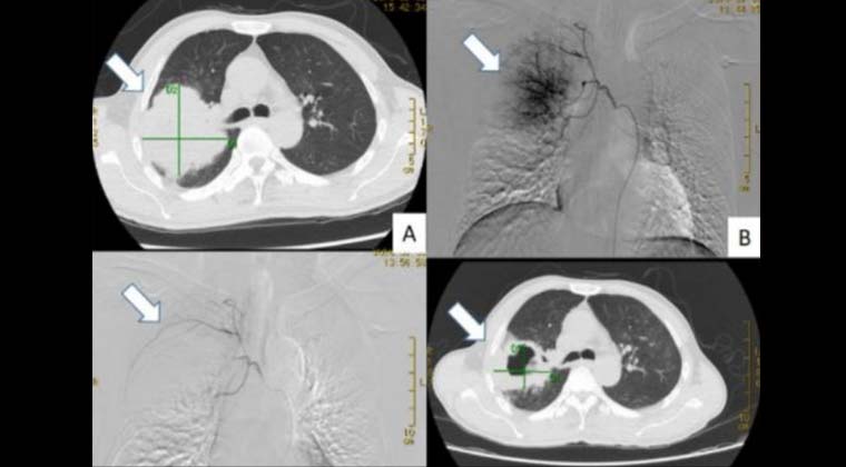 Использованы микросферы с лекарственным препаратом для химиоэмболизации бронхиальной артерии,