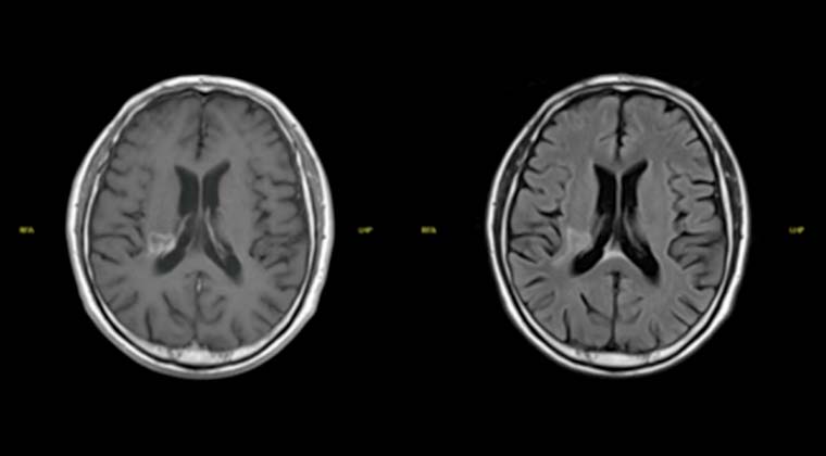 Через 5 месяцев после лечения контрольное МРТ головного мозга показало практически полное исчезновение опухолевых очагов (G-PR). Качество жизни пациентки хорошее.
